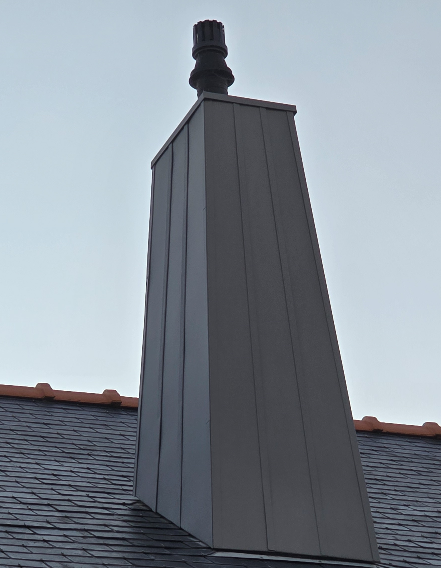 Rénovation couverture et habillage cheminée en Alu Quartz